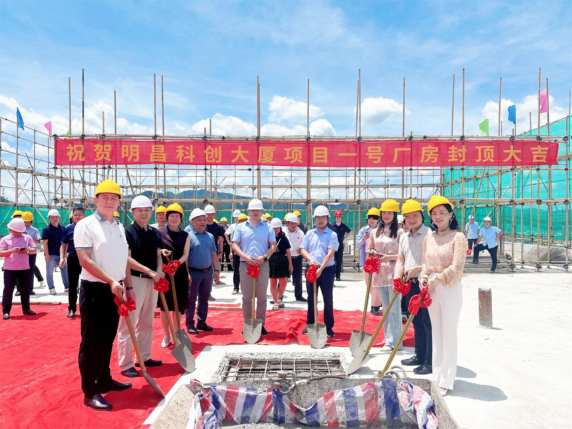 在此,特別地感謝明昌科創(chuàng)大廈的設計團隊、承包方和監(jiān)理方,向奮戰(zhàn)在一線的全體建設者們致以崇高的敬意!是你們嚴謹專業(yè)的工作,確保了本工程的高質量、高標準和施工安全。接下來,繼續(xù)保持團結協作,拼搏進取的精神,高質量、高效率地完成剩余的建設工作,確保項目如期交付使用。以封頂為新的起點,始終貫徹安全第一、質量第一的方針,不忘初心,砥礪前行。用我們的智慧和汗水,不斷地為明昌科創(chuàng)大廈的建設添磚加瓦,為黃江鎮(zhèn)產業(yè)發(fā)展做貢獻,攜手共進向著更高的目標邁進,共同創(chuàng)造更加美好的明天!
