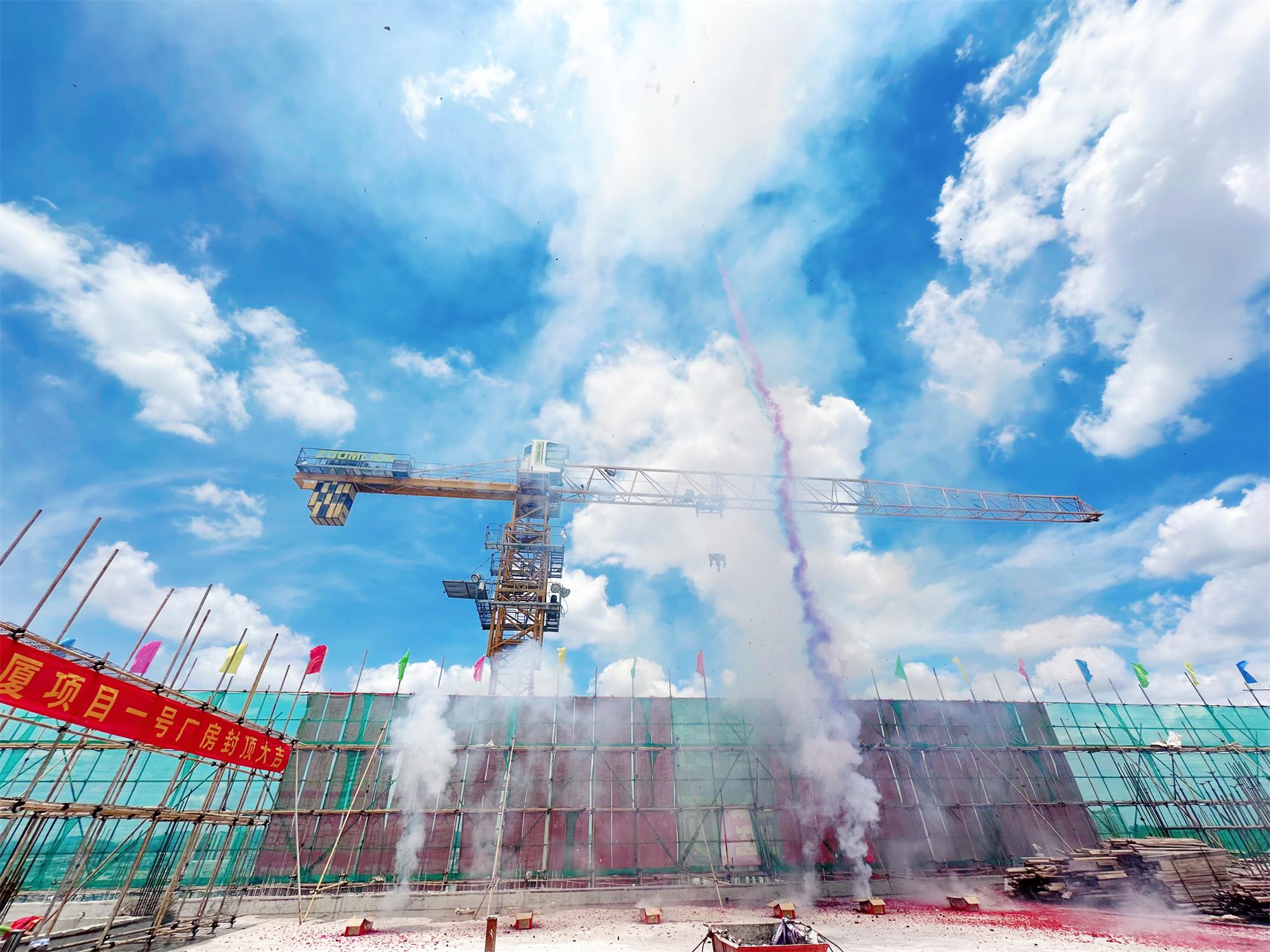 2025年6月24日(農歷五月廿九)上午,東莞市黃江鎮(zhèn)的一片土地上掛了許多慶賀的條幅和彩旗,正舉行明昌科創(chuàng)大廈項目一號廠房封頂儀式,整個建設工地洋溢著一片喜慶氣氛。業(yè)主單位、施工方和監(jiān)理方等,共同見證這一激動人心的時刻。